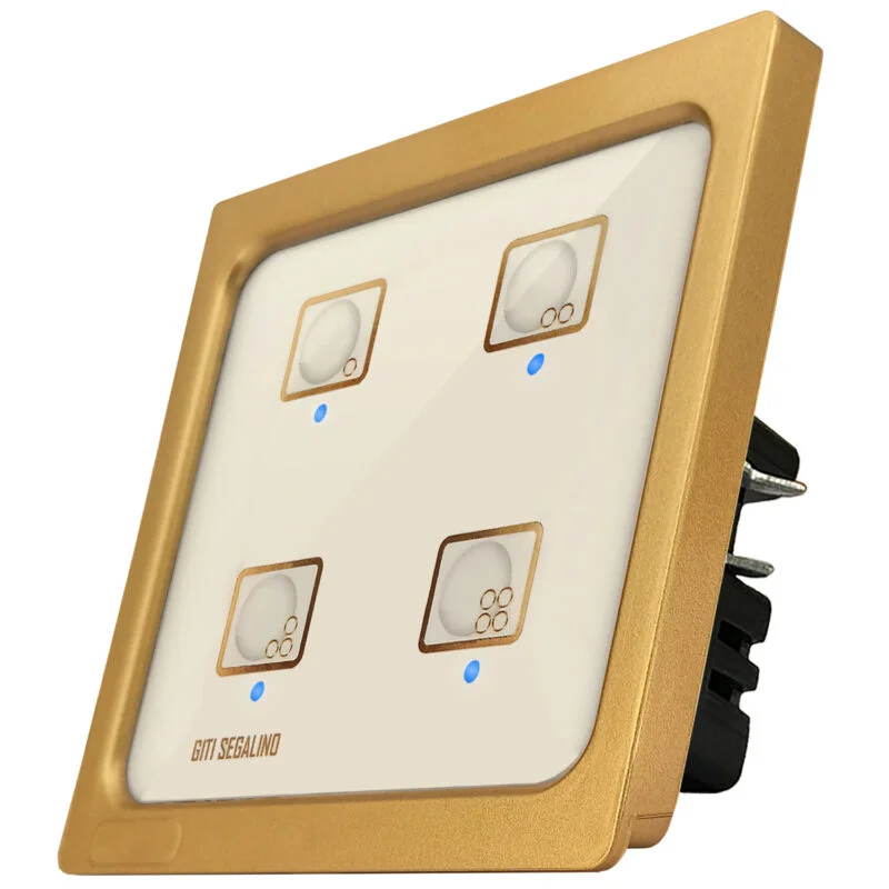 کلید لمسی چهار پل طلایی مدل شاینا دارای تغذیه ورودی 220-240 ولت و ابعاد 80*85* 40 میلی متر جهت کنترل تجهیزات روشنایی از راه دور استفاده می شود.