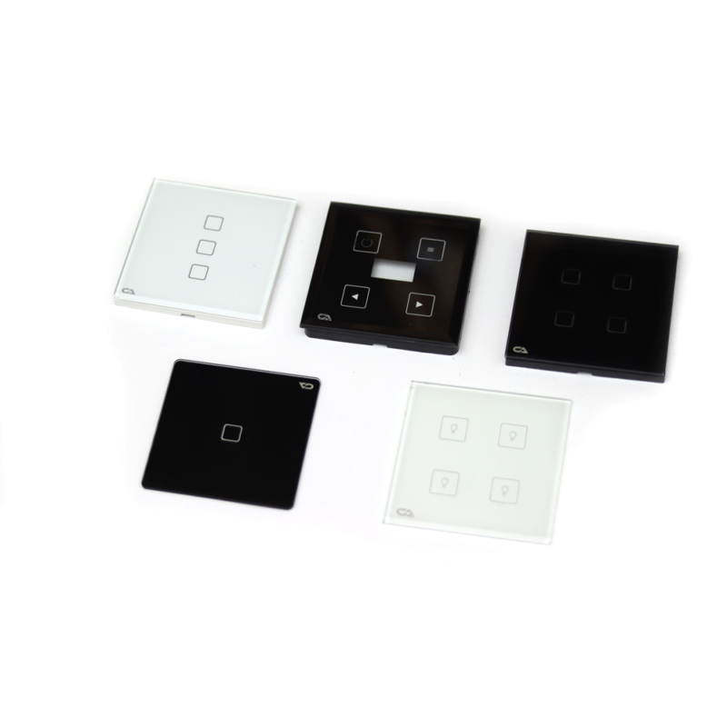 شیشه 4 میل مشکی لبه تیز مخصوص قاب هوشمند سازی مناسب برای انواع کلید های لمسی هوشمند می باشد.ولتاتک پیشرو در تامین و واردات قطعات هایتک