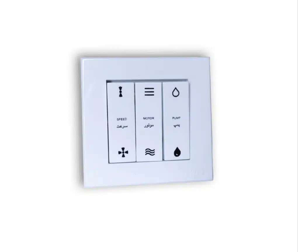 کلید کولر توکار پارت الکتریک مدل تابش 5177، کلیدی است که به ما این قابلیت را می دهد تا پمپ کولر را خاموش و روشن کنیم و متناسب با میزان دمای منزلمان ، سرعت موتور کولر آبی را که دارای دور تند و دور کند می باشد، در حد دلخواه قرار دهیم. کلید کولر توکار پارت الکتریک در مجموع دارای 4 عدد پیچ (4 ترمینال اتصال) است که شامل سه ترمینال خروجی و یک ترمینال ورودی می شود. سه ترمینال خروجی اغلب دارای رنگ نقره ای است که پیچ غیر مشترک نامیده می شوند و به آنها سه سیم که در نهایت به جعبه تقسیم داخل کولر وارد می شود، متصل می شوند. ترمینال ورودی که به آن یک سیم فاز متصل می شود، اغلب به رنگ طلایی یا مسی است که پیچ مشترک نامیده می شود.